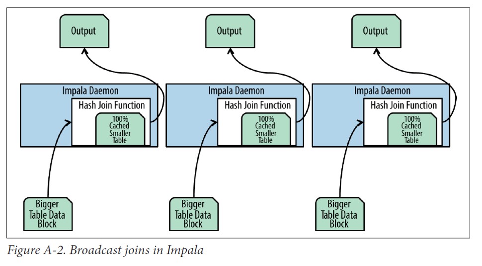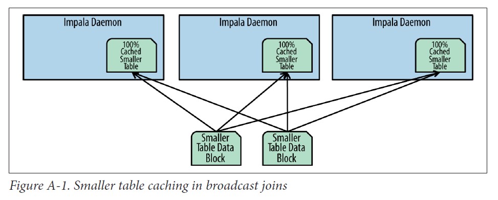 - Impala将较小的表通过网络分发到执行任务的Impala后台进程中