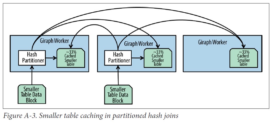 正如上图所示,大表的数据也通过相同的哈希函数就行分区并把分区发送能和小表相应数据进行连接的结点。注意,和广播连接不同的是,广播连接只有小表的数据需要通过网络分发,而分区哈希连接需要通过网络分发大表和小表的数据,因此需要更高的网络开销。