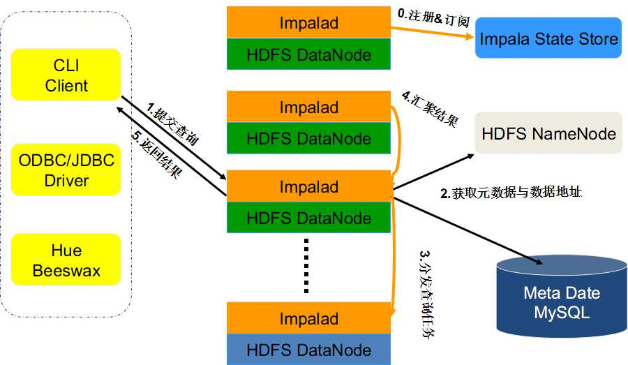 注册&订阅:当Impala启动时,所有Impalad节点会在Impala State Store中注册并订阅各个节点最新的健康信息以及负载情况。