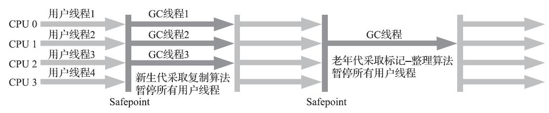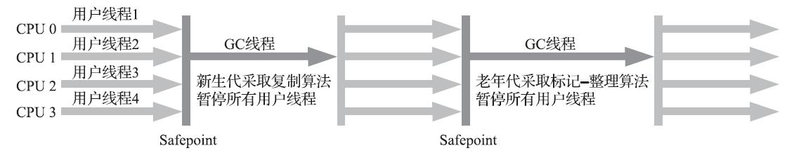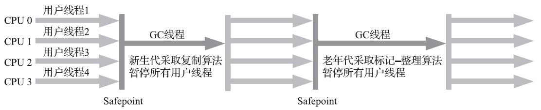 如果移动存活对象,尤其是在老年代这种每次回收都有大量对象存活区域,移动存活对象并更新所有引用这些对象的地方将会是一种极为负重的操作,而且这种对象移动操作必须全程暂停用户应用程序才能进行 ,这就更加让使用者不得不小心翼翼地权衡其弊端了,像这样的停顿被最初的虚拟机设计者形象地描述为“Stop The World”