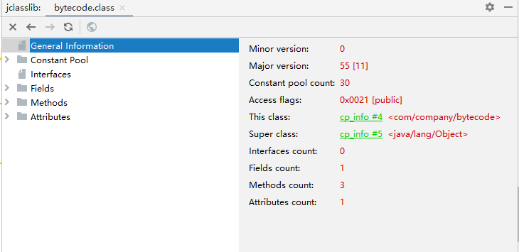 以上就是对一个简单的java程序字节码的分析,关于方发表和属性表集合这两块本身还有更多的东西还没有展示,其实也没有太多知道的必要。了解其主要结构,配置字节码查看工具能读懂即可