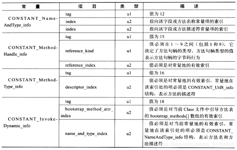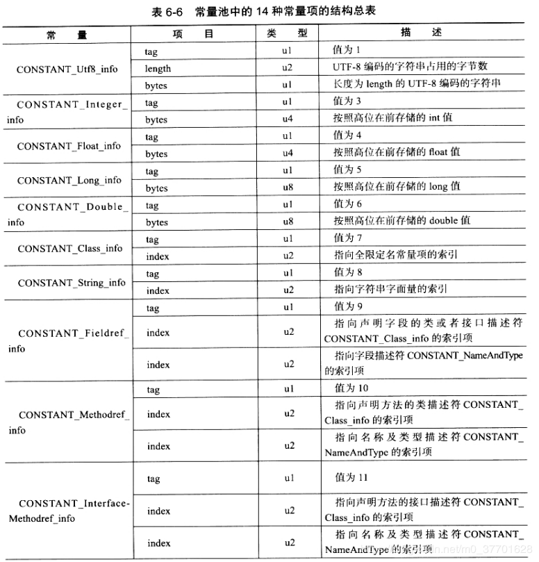 可以从表中看出java常量池前包含以下信息:魔数、版本号、常量池