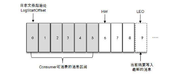 如下图所示,消费者只能拉取offset在0到5之间的数据,而offset为6的消息对消费者来说是不可见的。LEO(Log End Offset),它标识当前日志文件下一条待写入消息的offset,即下图offset为9的位置,LEO的大小相当于当前日志分区中最后一条消息的offset+1.