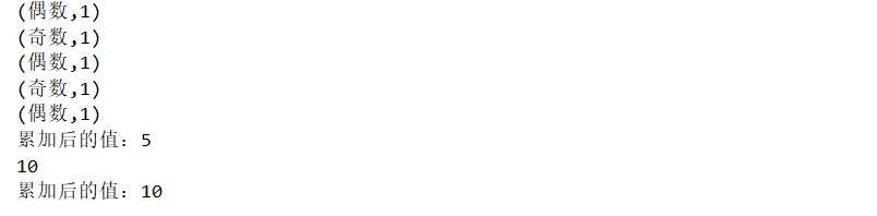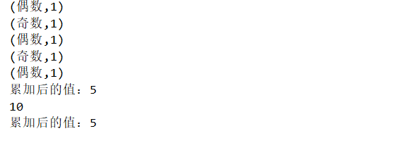 之后又对新产生的的byKey进行了一次count(action操作),其实这个时候又执行了一次map(transform)操作,所以累加器又增加了5。最终获得的结果变成了10。
