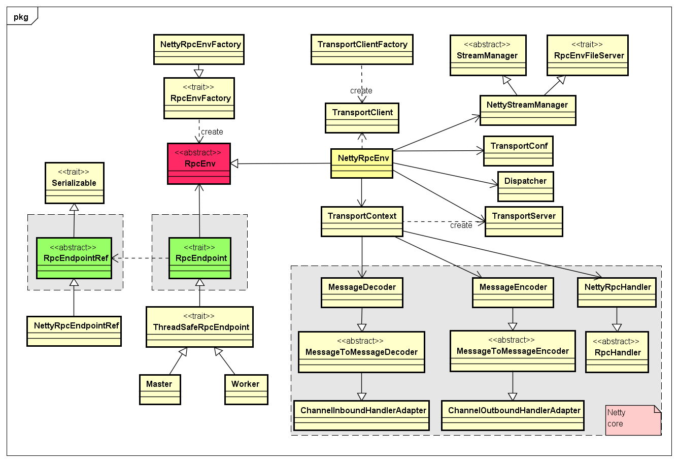 核心的RpcEnv是一个特质(trait),它主要提供了停止,注册,获取endpoint等方法的定义,而NettyRpcEnv提供了该特质的一个具体实现。